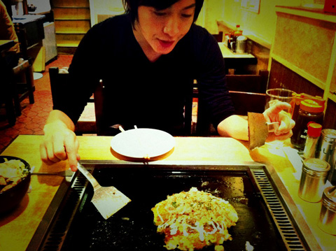 ほろよい気分でめちゃんこ美味いお好み焼きともんじゃ焼きを食べワンマンの打ち合わせなど。