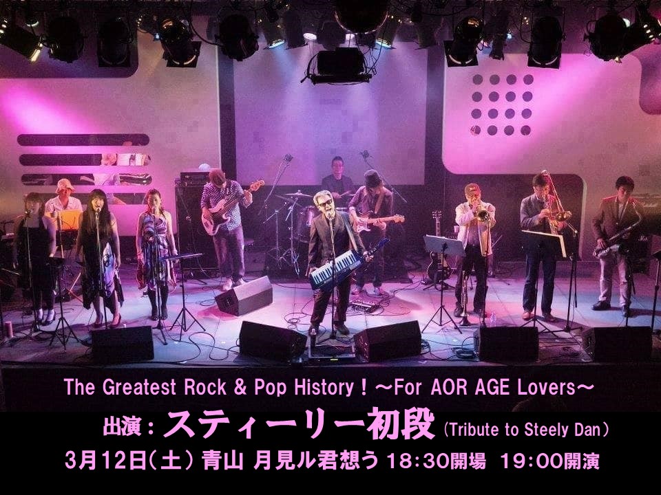 おかげさまで好評をいただき回を重ねているトリビュート・ロック・ショウ “The Greatest Rocks”、今回は弊社『AOR AGE』愛読者の皆様に向け「〜For AOR AGE Lovers〜」と題し、スティーリー・ダンのトリビュート・バンド “スティーリー初段” が登場!