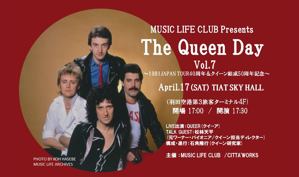 クイーン・ファンの皆様に朗報です。4月17日(土)クイーンの日、羽田空港にて。新たにもうひとつイベントの開催が決定しました! こちらは毎年恒例ながら昨年開催できなかったトーク&ライヴ・イベント。ぜひこちらにもご参加を、そしてその際にはくれぐれも感染の拡大防止もお忘れなきよう!